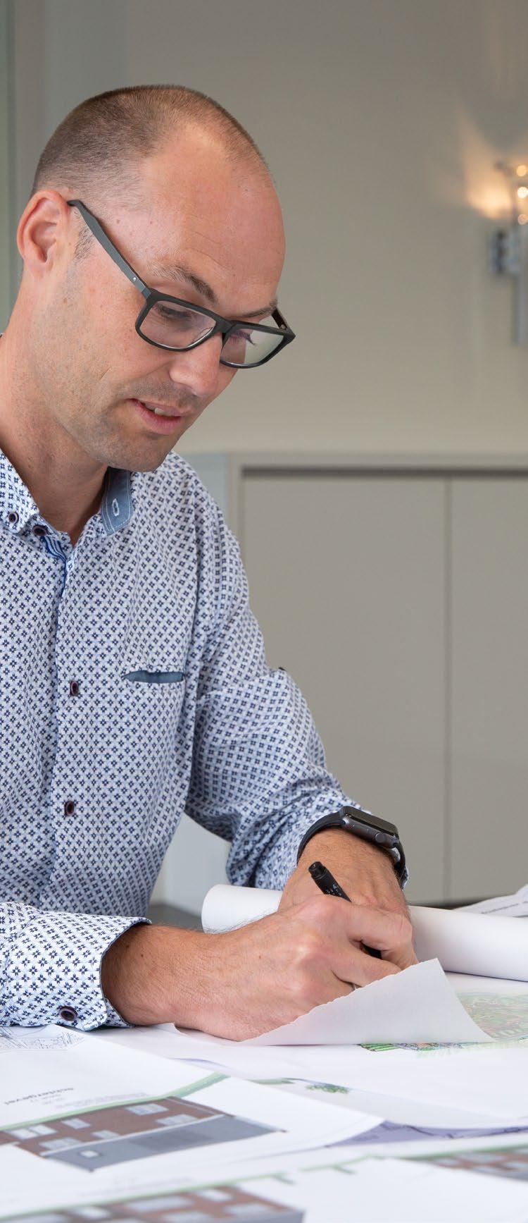 In tegenstelling tot de gangbare praktijk, waarbij projectontwikkelaars per project een architect inhuren, heeft Nollepolder een andere aanpak. Sebastiaan is er in vaste dienst. Dit biedt het voordeel van dagelijkse interactie met collega’s, waaronder de verkoopbegeleider die goed op de hoogte is van de behoeften van kopers. “Dankzij de nauwe samenwerking sta ik als architect ook dichter bij de kopers. Bovendien ben ik vanaf het eerste begin betrokken bij de ontwikkeling, inclusief overleggen met stedenbouwkundigen en de gemeente,” vertelt Sebastiaan vanachter zijn tekentafel.
