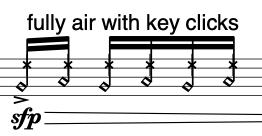 Key clicks are sometimes requested with air sounds and are notated with x’s through the stems
