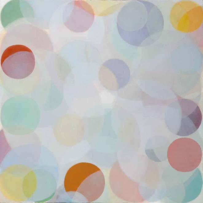 A work from a series of light and space wall works that utilize painted and layered mesh fabrics to create experiences of fluctuating moiré patterns activated by viewer’s movements. The works explore perception of color, light, and material across time and space, and continue my exploration of using simple, analog materials to create the appearance of digital, kinetic effects.