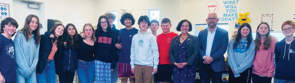 Over three years, Brandeis implemented innovative, handson programming that brought these strands to life. Middle school students partnered with younger peers to design and teach lessons on Jewish civic leaders, including Justice Ruth Bader Ginsburg, Sandy Koufax, Emma Lazarus, and Rabbi Abraham Joshua Heschel, highlighting powerful models of leadership and impact. Eighth graders visited the San Francisco Superior Court to observe proceedings and meet with Alumni Parent Judge Linda Colfax, a Deputy District Attorney, and an Assistant Public Defender. San Francisco Supervisors Rafael Mandelman ‘88 and Myrna Melgar engaged students in dialogue about ethical leadership, and civic leader Manny Yekutiel shared his journey in public service, modeling leadership rooted in Jewish values.