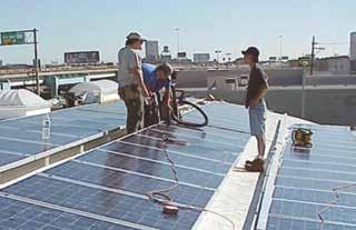2002 - Rainbow workers designed the Green Energy Devise by installing daylight harvesting, solar electric and solar thermal panels.
