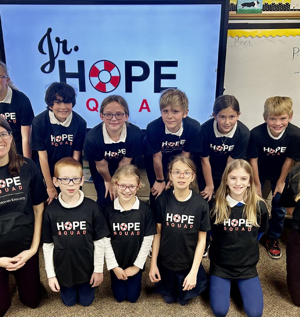 O’Gorman Junior High implemented Hope Squad with an emphasis on visibility and student involvement. Squad members helped lead Monday and Friday prayers, hosted a Mental Health Lunch Break offering resources and conversation, and supported community events like the boys’ and girls’ basketball games.