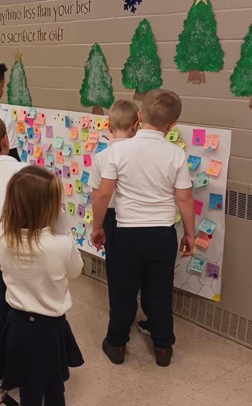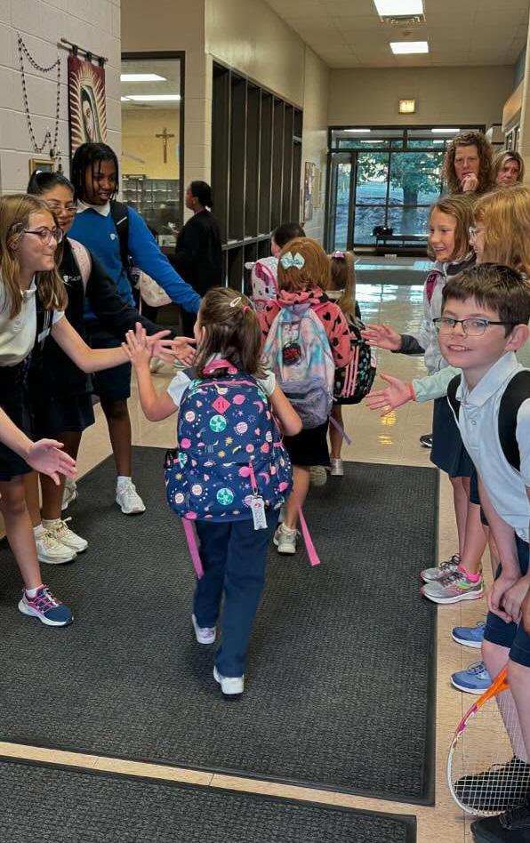 ● St. Michael & St. Katharine Drexel: Students shared morning announcements and daily “hope” challenges. Activities like mix-it-up lunches, classroom games with preschool students, and kindness videos cultivated a sense of connection and inclusion. St. Katharine Drexel also created a “stop, smile, breathe” wall and a Joy Jar filled with encouraging notes.