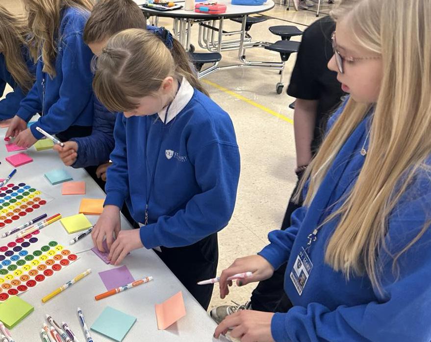 ● St. Mary: Squad members shared books on kindness, visited residents at Touchmark, and led initiatives like the “Notes of Hope” project, which decorated the halls with positive messages. A paper chain linked every student’s name as a symbol of unity, and the Squad also organized gifts for The Foster Network.