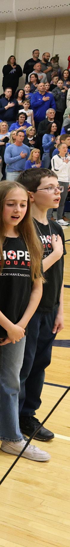 One of the most visible manifestations of this culture shift occurred during Hope Week in February, when the high school hosted themed days, resource tables, a “shred your stress” activity, therapy dogs, and studentled prayer moments. The doubleheader basketball game on February 25th became a unifying event, where Hope Squad members from all grade levels came together to share their message of hope and encouragement.