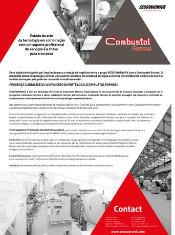 Esta edição contempla os artigos que são: 1) Mantendo Elevados Padrões de Tratamento Térmico: Aprendendo com a Indústria de Dispositivos Médicos; 2) Desafios Críticos de Tratamento Térmico Resolvidos com Modelamento Computacional Prático – Parte I; 3) Aplicação de Perfil Ótico Através do Processo; 4) Estudo da Influência da Ferrita Delta em Parafusos Tratados Termicamente na Resistência ao Torque; 5) Comparando o Isolamento de Manta de Grafite de Forno a Vácuo - PAN vs. Rayon; 6) A Chave para Estender a Vida Útil de um Revestimento Refratário