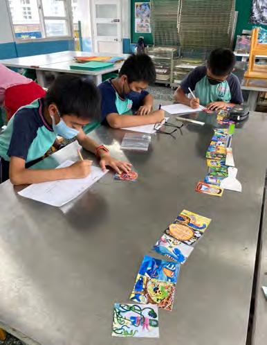 102 未來-警察徽章設計/國際鼓藝節 童年-打點滴 漫畫/「人真鮮」壽司店 陳 感謝老師教導,這四年來老師教我們認甯識了很多美術用具、教我們進行很多種類的創作,老師還帶我們去了很多美術館參觀。老師很細心指導我們,告訴我們作品有哪裡要改進,所以我從三到六年級進步很多,很感謝老師的指導,老師辛苦了。