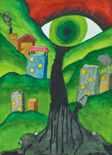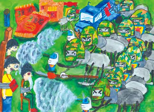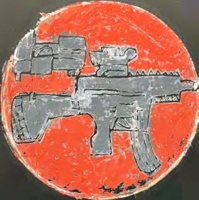 72 張 佑 嘉 未來-保衛 童年-武器玩具 設計/塑造-歷久不朽 就讀美術班的過程中,雖然遇到很多困難,例如剛開始不會調色、不會抓物品的比例、不會畫陰影,但也有容易的部分像是上色。四年來不斷學習與成長,其中我最喜歡的作品就是水墨的「未來考古」。