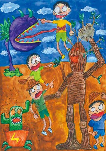 78 陳 宗 佑 未來-海軍陸戰隊 童年-回憶列車 漫畫/噪音獸的反擊 在美術班的四年來,我遇到了許多朋友,讓我成為更好的自己,期待我們在未來相遇。謝謝恩師讓我們成長,學會禮儀和尊重,也讓我們學會了美術,我讓從什麼都不會的菜鳥,成長成會很多美術技巧的人,所以未來我會回來服務山豐國小。