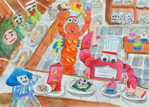 112 未來-烘焙好吃的餅乾漫畫/粉紅阿嬤的直播生活童年-第一個喜歡的零食彩繪/修單車的阿伯張 絲 琹 雖然我是四年級才上美術班,但我學會了很多,例如水彩的明暗、素描的技巧,也學習了水墨、版畫、平面設計等不同的創作種類。我要感謝老師們、同學們這三年的陪伴、照顧,我學會了很多東西,希望我以後可以繼續進步。