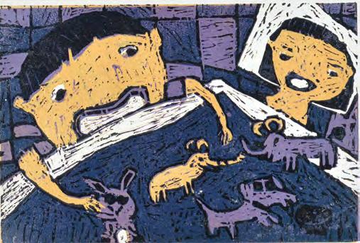 98 未來-糖果富豪彩繪/服裝設計師 童年-第一枝筆 版畫/我的玩具活了 施 妤 炘 一開始我是因為喜歡畫畫就去考試一下,結果進入了美術班。這四年來我的畫畫有進步很多,也認識了很多朋友、老師。我在美術班的時光過得很開心,謝謝老師這幾年的教導,老師您辛苦了!也謝謝這幾年來陪我一起瘋、一起鬧的朋友,快畢業了很捨不得,我會珍惜接下來的時光。