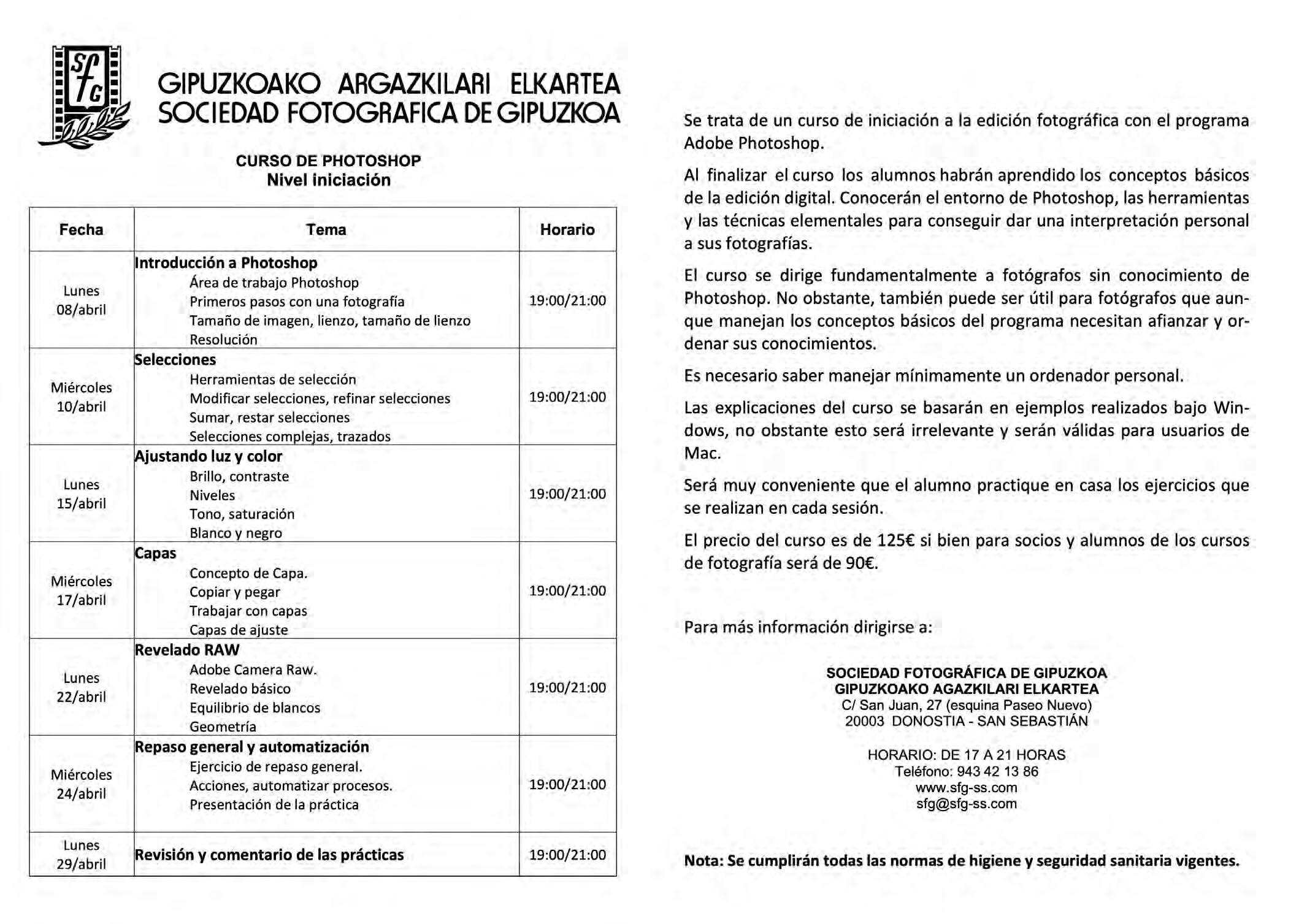 CURSO DEPHOTOSHOPNIVELINICIACIÓN:REVISIÓN YCOMENTARIO DE LASPRÁCTICAS
