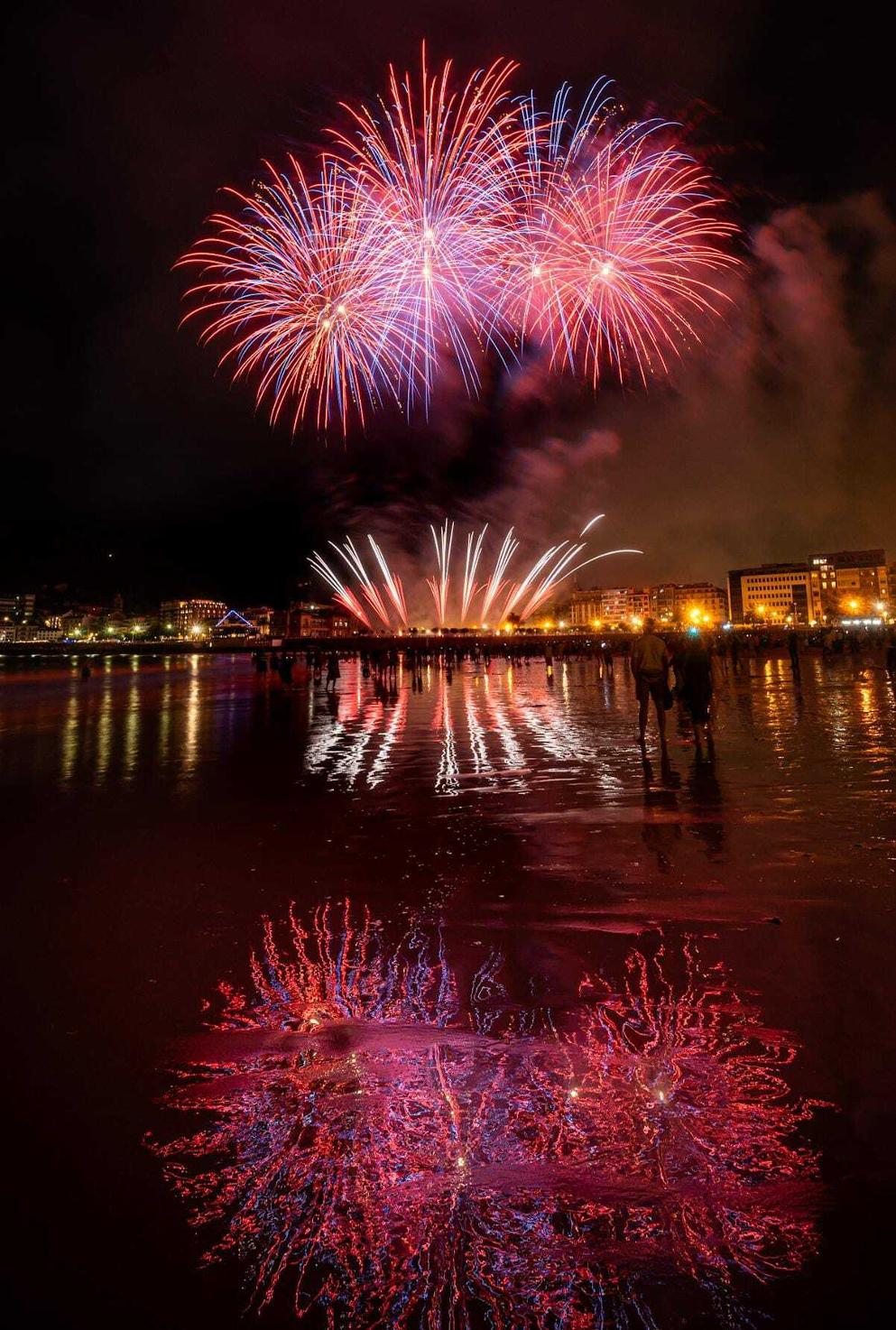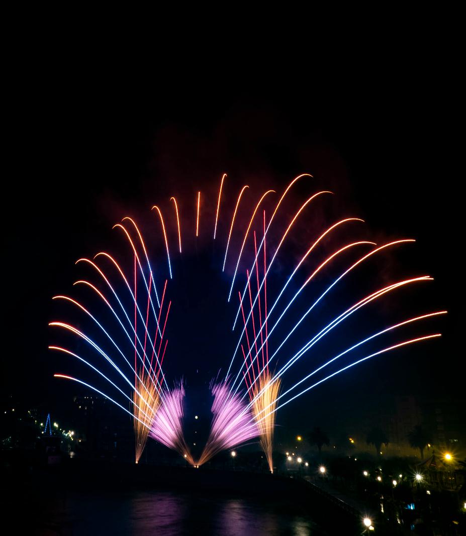 A pesar del aguacero,losfuegos continuaron,ynosotrosdecidimos seguir adelante,viendolalluviacomo unaoportunidadparaexperimentar otraformadefotografiar Así,nos dejamosempapar mientras capturábamoslabellezadelosfuegos gallegosqueiluminabanlanoche