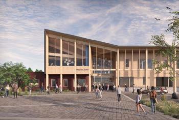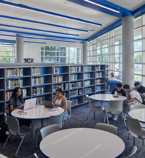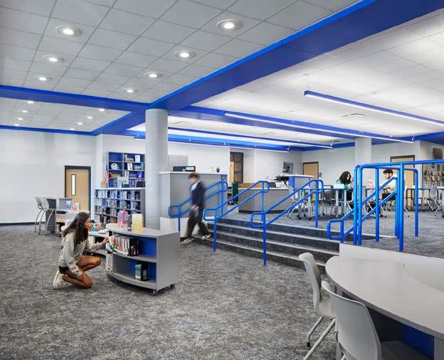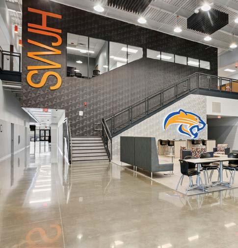 Set for completion in 2027, the school will feature a three-story, sevenwing, 320,000-square-foot facility on a 27-acre campus. The project also includes renovations to the existing 100,000-square-foot building with striking monumental stairs at its center. Designed for 1,200 students, the school will include a 913-seat performing arts center, 24 classrooms, 44 specialty rooms, and extensive athletic spaces, including a competition arena, storm shelter gym, and new baseball/softball complex. The school also will have 979 parking spaces.