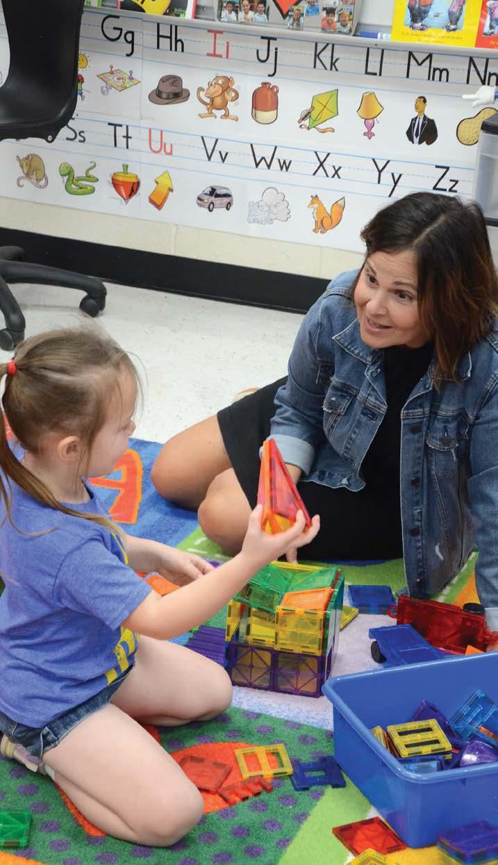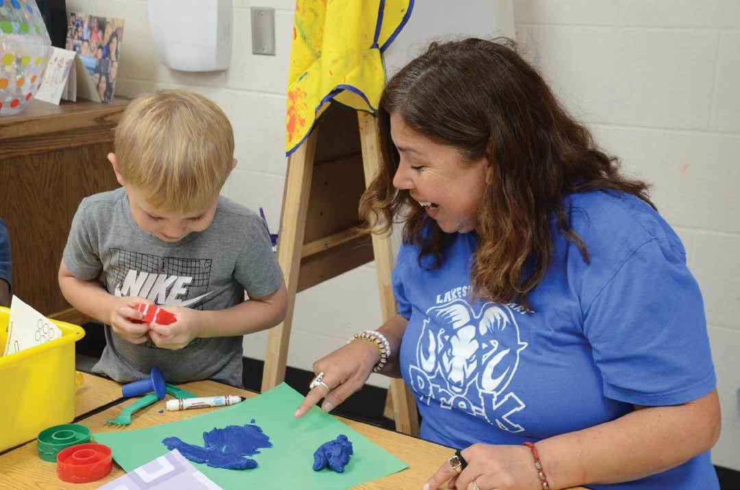 Four-year-old pre-K students at Lakeside Primary School learn basic behavioral skills at the same time they get a head start on the school’s curriculum. Educators say it helps the district attract students who stay for kindergarten. The program is such a high priority that each class of 20 is led by a certified teacher on the same salary schedule as the other teachers, with each assisted by a paraprofessional.