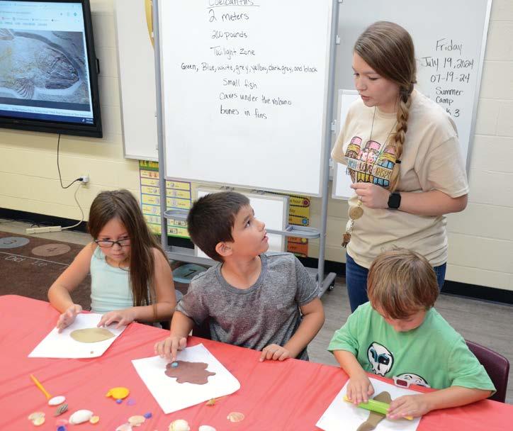 The Izard County Consolidated School district spent part of its summer vacation hosting two academic day camps bringing roughly 100 students to campus. Educators say the camps helped students sharpen their skills both mentally and socially. The theme was “Continuing Our Journey Around the World.” Above, camp director and middle school principal Sarah Burns helps first grader Lilith Boyd use chopsticks to eat goldfish crackers while learning about China.