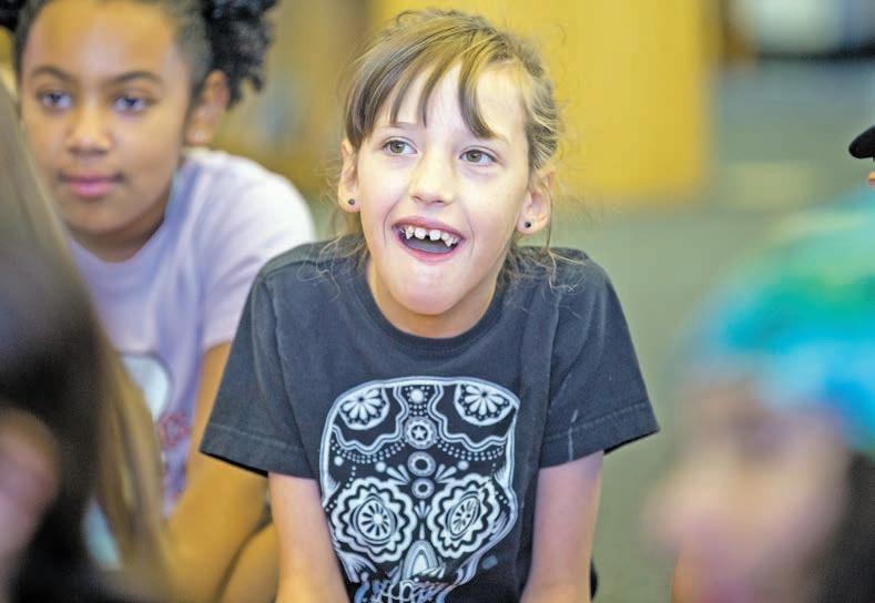 uLuChildress’pathinto GonzalesCommunity Schooleachmorningdiffersfromtheroutetaken bysomeofherpeers. She’sgreetedbyaschool crossingguardandherone-ononeeducationalaide.Shehits abuttontoopenthebuilding’s frontdoorsandglidesthrough thehallwaysinawheelchairas sheheadstoherfourthgrade classroom.