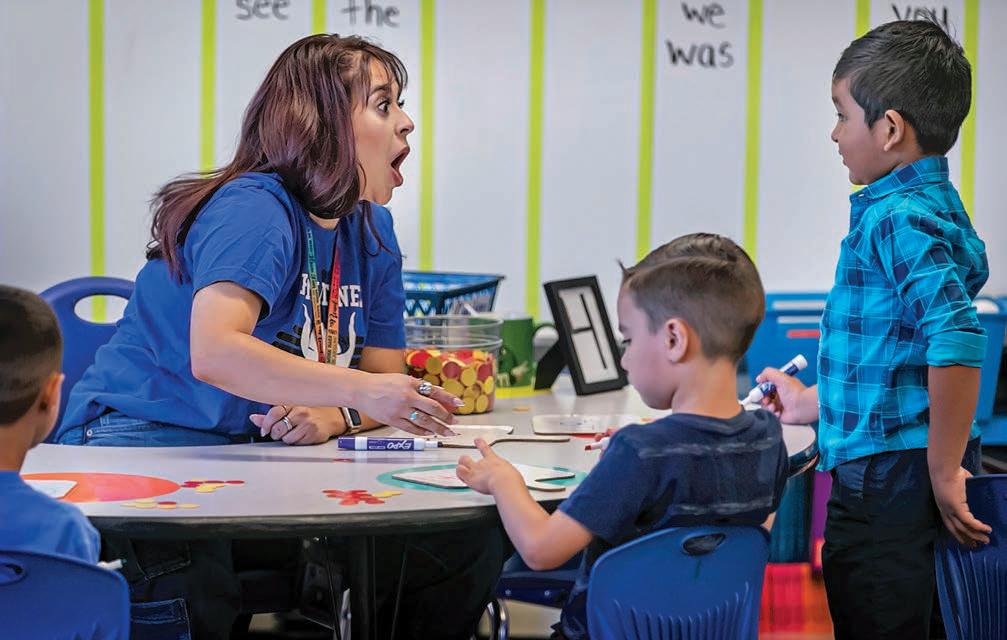 Nataliadashedtoherdeskandpulled outapaperlistingallherfavoritethings abouttheschool,withhand-drawngold stars,redheartsandaportraitofher teacher,JulianaValdez.“Scoolisthe best.Ilovemytecher!!”shewrote. Audreysaidshelikescomingto school“becausewe’reallabigfamily.” Thatfeelingpermeatestheschool, saidPrincipalAngeliqueArmijoOrtiz. ShedescribedtheatmosphereofE.J. MartinezusingaSpanishword: Cariño Theschoolcommunityis cariñoso loving,warm,affectionate.