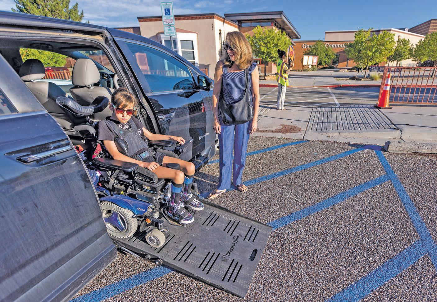 ABOVE:ElizabethChildressof SantaFebringsherdaughter, LuluChildress,9,toGonzalez CommunitySchoolthismonth. LuLuhascerebralpalsy,amotordisabilitythataffectsher musclesbuthasn’tcaused cognitiveimpairment.