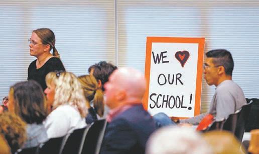 Theaudienceofupsetparentsresistedthepushtoclose schools.Dozensspokebeforethe board.Othershoistedcardboard signsvoicingtheirperspectives.