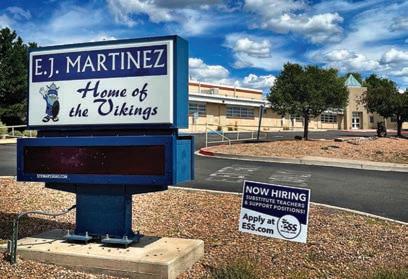 DatafromtheNewMexicoPublic EducationDepartmentshowsE.J. Martinezenrolled189studentsinprekindergartenthroughsixthgradeinthe lastschoolyear—54%ofitscapacityof 350students.It’soneofmanyschools inthedistrictservingonlyabouthalf thenumberofkidstheywerebuilt toaccommodate.Itsenrollmenthas droppedbymorethan41%since201314,whenitserved322students.