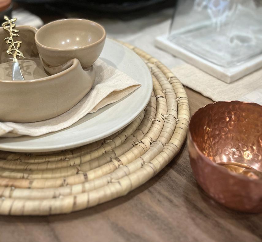 The living room’s picture window inspired Mason to make the home’s interior feel close to nature. In that room, she repainted pink-hued walls white. She chose furniture and decor with organic tones and rich textures that wouldn’t get washed out in the ample natural light. She anchored the room with a stately mocha brown coffee table Rodrigo Rodríguez had designed and built. She also integrated caramel performance velvet sectionals and commissioned a local artist to paint a landscape perfectly proportioned for the space.