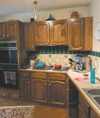 LEFT TO RIGHT: The home’s updated, sophisticated kitchen after the remodel and before