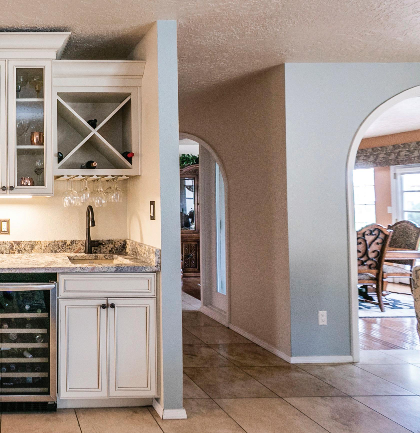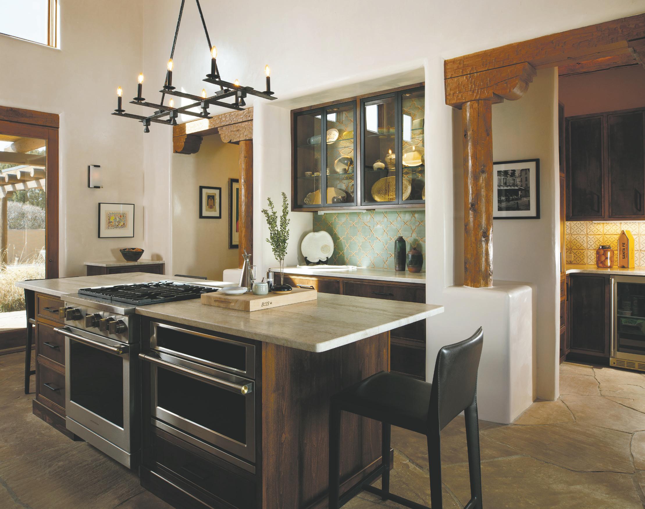 This 1990s Pueblo revival/Santa Fe style home emanated grandeur with its abundant wood detailing. With their kitchen remodel, Neubleu Interior Design’s clients aimed to update the home while paying homage to its distinctive architectural style. The clients also hoped to make the space slightly more indicative of their personal style, with cleaner, crisper lines.