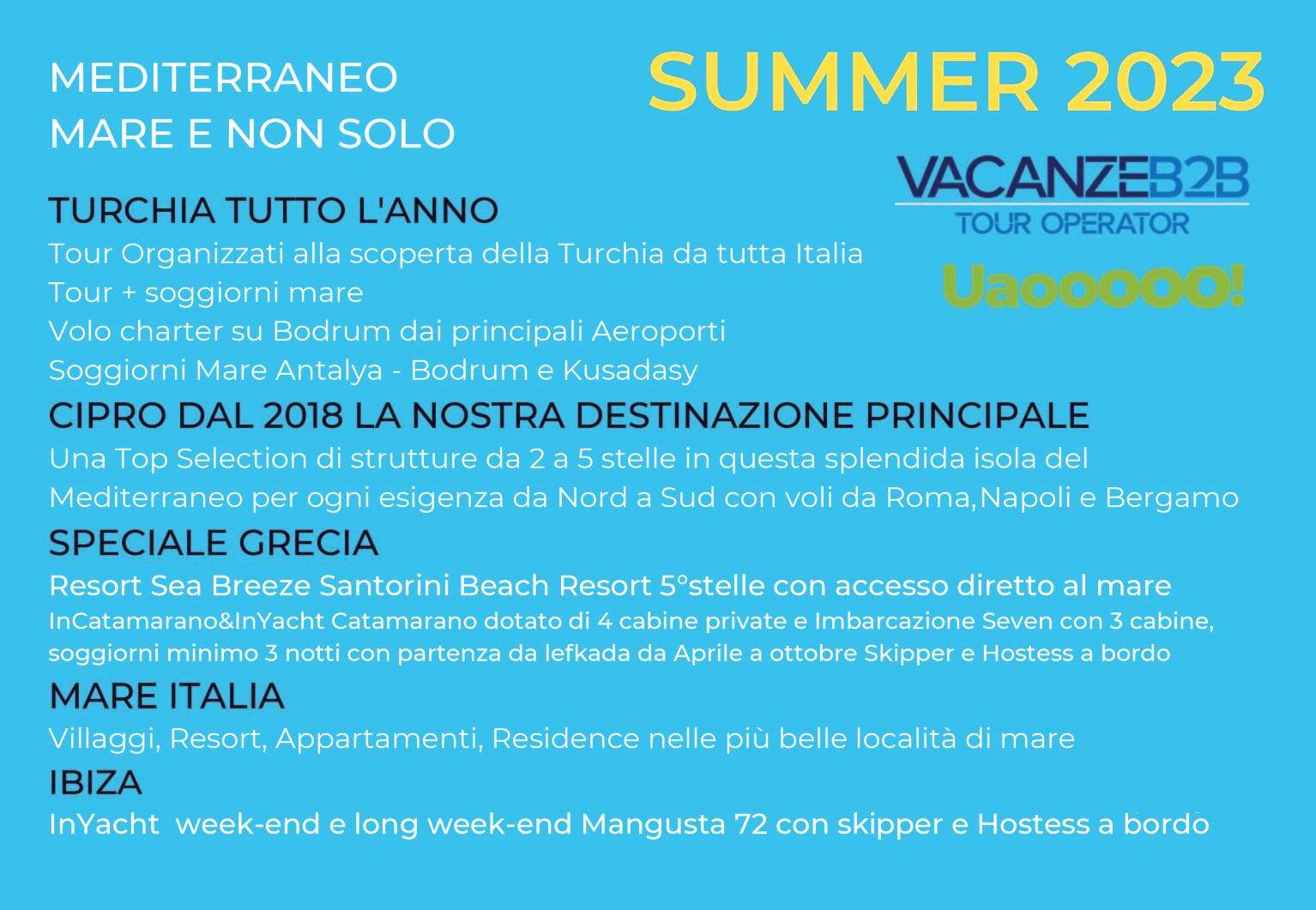 «La Turchia è una destinazione turistica sempre più popolare tra i viaggiatori italiani, grazie alla sua ricchezza culturale, artistica e paesaggistica - racconta Carolina Abbatemarco, responsabile programmazione - Per permettere alle adv di scoprire tutte le bellezze del paese, abbiamo organizzato un tour salendo sul primo volo charter con partenza da Malpensa a Bodrum con 17 agenti da tutta Italia Gli adv hanno così potuto vivere in prima persona l’esperienza e acquisire conoscenze e strumenti per poter promuovere al meglio la destinazione Gli agenti hanno apprezzato la professionalità e i servizi da noi offerti in collaborazione con la nostra dmc locale» Per l’estate appena incominciata il to offre «soggiorni mare a Bodrum, Antalya e Kusadasi Un’altra meta di prima importanza è la destinazione Cipro con una top selection di strutture fino a 5 stelle ultra all inclusive, per ogni esigenza da Nord a Sud Le proposte dedicate al mare Italia includono villaggi, resort, appartamenti, residence nelle più belle località In Grecia, il Resort Sea Breeze Santorini Beach Resort è un 5 stelle con accesso diretto al mare»