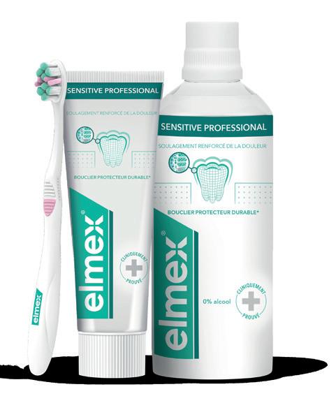 Le dentifrice elmexÂź SENSITIVE PROFESSIONAL est un dispositif mĂ©dical de classe IIa pour soulager les dents sensibles. Lire attentivement les instructions ïŹgurant sur l'emballage. CE 0483. Colgate-Palmolive manufacturing Poland, Sp. z.o.o,Aleja Colgate 2, Swidnica 58-100, Poland. Mise Ă jour septembre 2024.1. Pour un soulagement immĂ©diat de la douleur, appliquez une noisette de dentifrice directement sur les dents sensibles et massez doucement pendant 1 minute. ĂtayĂ©e par une sous-analyse de Nathoo S, et al 2009. Les donnĂ©es montrent que 42 des sujets sur 42 (soit 100% ou 10 sur 10) afïŹrment ressentir un soulagement de leur hypersensibilitĂ© de façon immĂ©diate tant au niveau tactile quâau niveau du jet dâair grĂące Ă une seule application en mettant un peu de dentifrice sur le bout du doigt et en massant la zone concernĂ©e. Sous-analyse de Nathoo S, et al 2009 (CRO-2009-01-SEN-IARG2-ED; Nathoo S, et al. J Clin Dent. 2009;20(4):123-30).