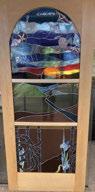 Bette Yozell’s stained glass class worked collaboratively on this door and presented it to the school in 1988. It is now displayed in our library.
