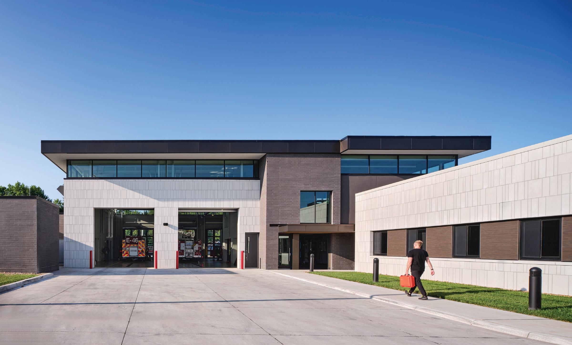 ▪ Civic presence – The station sits on the crest of a hill along the busy 75th street corridor in northeast Johnson County. It was important to maintain a beautiful civic presence along this site that not only reinforced the City’s Forward OP vision, but also tied into the architectural context of the Metcalf Avenue development corridor. Durable materials such as prairie stone and burnished brick not only provide a sense of permanence but also reduces long term exterior maintenance for the facility.