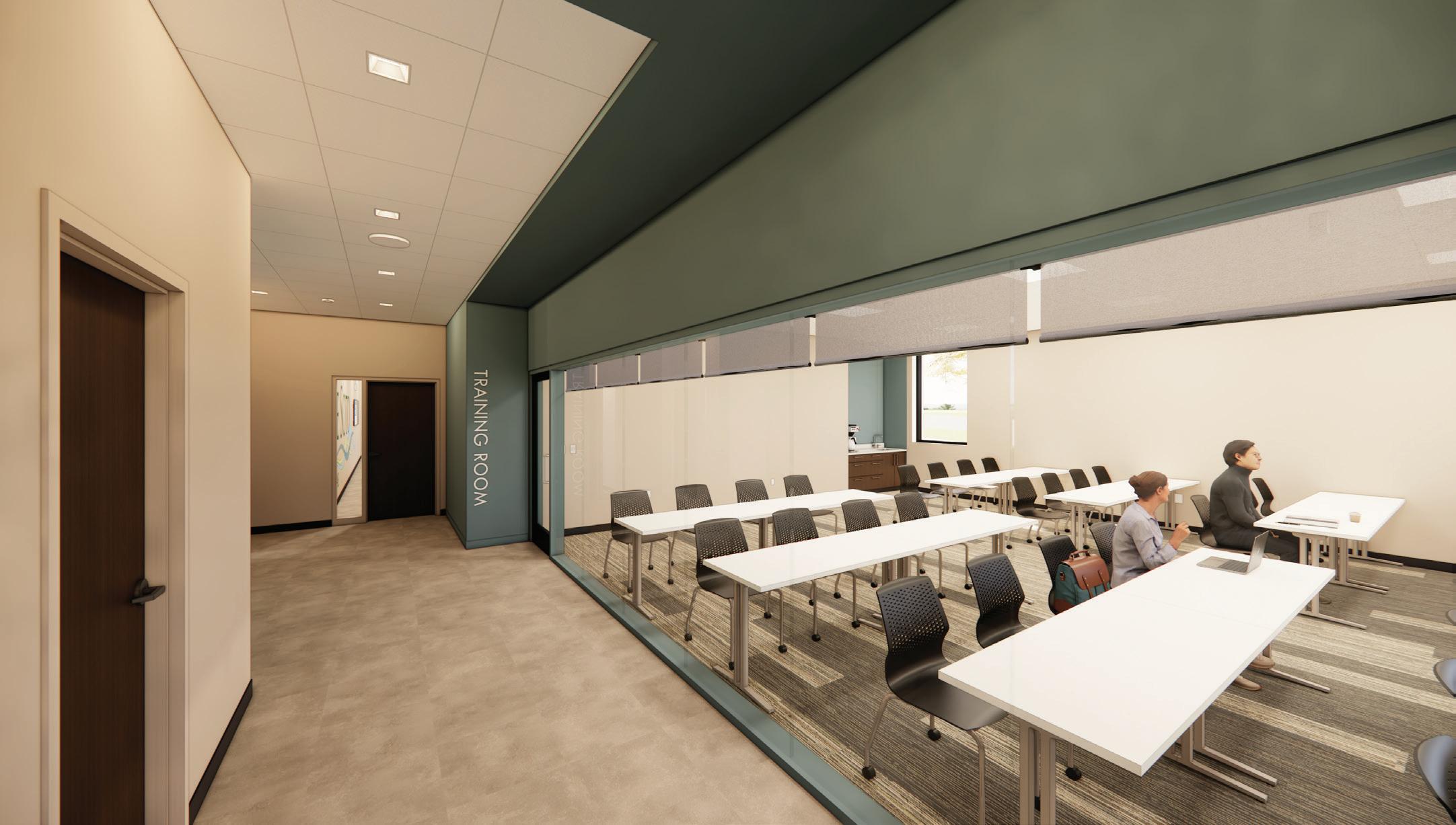 ▪ Future Administrative Growth: With the installation of the Panasonic battery plant and continued growth that is anticipated in the De Soto area, SFS was tasked with providing a design that would allow for future expansion of the facility to accommodate the anticipated growth. The fire command administrative areas is designed to allow for westward and northward expansion in a way that would minimize impact to continued operations at a future date. The apparatus bay is also designed to allow for additional bay expansion or ancillary expansion of support structures to the east such as a training tower and additional bay for reserve equipment.