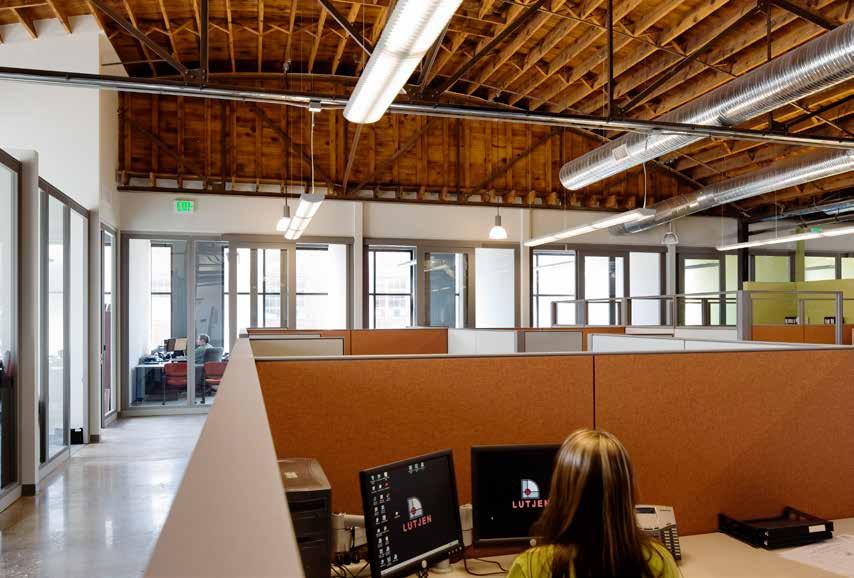 The new headquarters for Lutjen’s engineering firm is housed in an existing warehouse building, economically renovated to expose its raw beauty. Sustainable systems, finishes and methods were utilized to send a clear message about their company’s commitment to environmentally responsible practices.