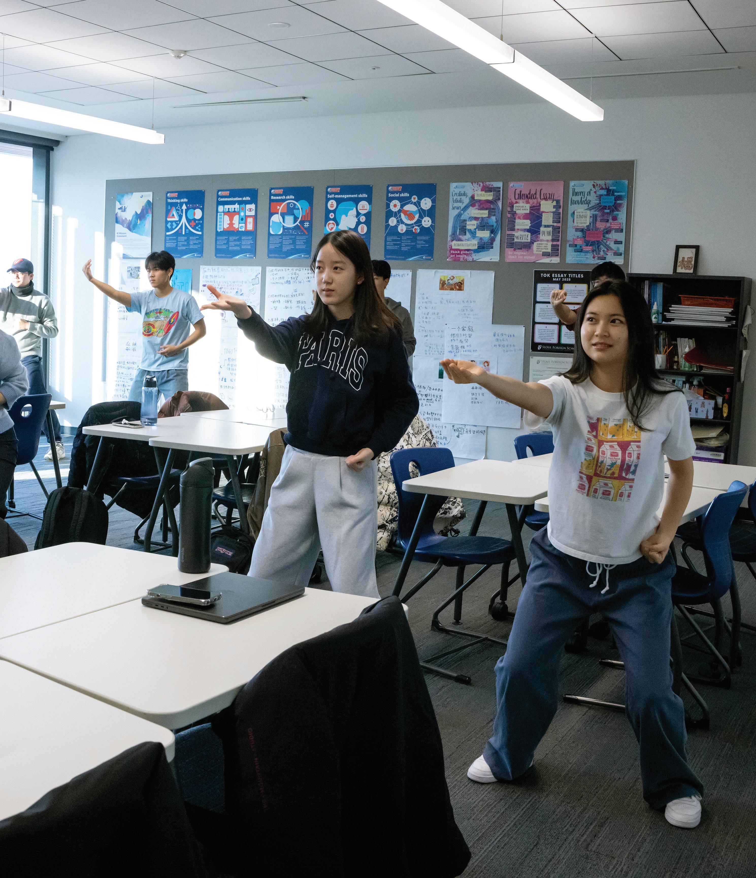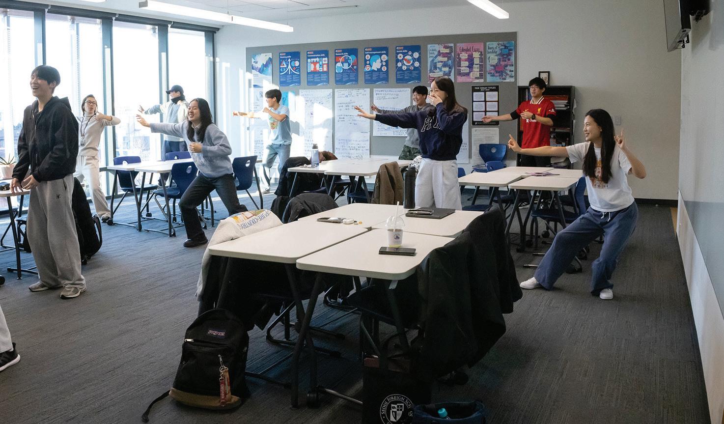 Across campus, in Chinese class, mindful movements help students shake off sleepiness and spark focus for Period 1, bridging body, mind, and tradition.