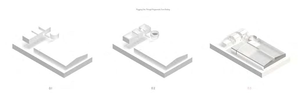 A SYSTEM OF ORAGINZATION Site Plan (left) / Massing & Tryptich Studies (above)