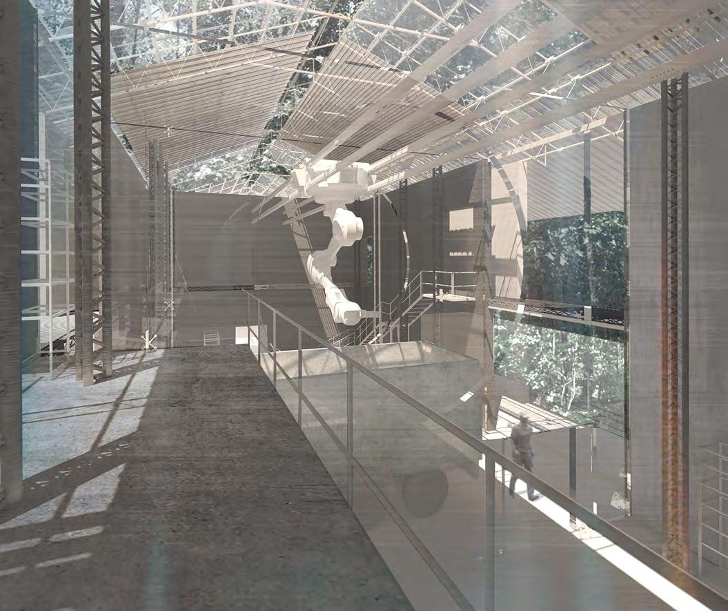 berm through a system of trees tethered at the continental shelf. Eventually growing into a forest, this harbor would become both resistant yet adaptable to the effects of climatic changes and events. Anticipating the events of a hurricane in the region, the materiality of the facility reflects these considerations.