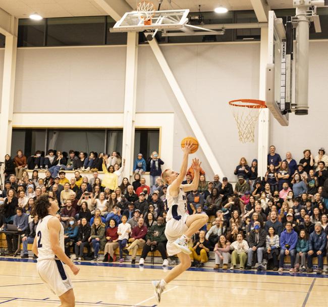The team was honored at City Hall by the SF Board of Supervisors for their outstanding achievements. 12th grader H. Rutherford goes for the dunk. He‘ll be playing for University of Puget Sound this fall. 11th grade guard M. Macdonald gets air during layup after layup.