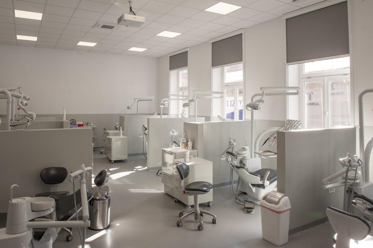 U konačnici dobivena je klinička vježbaonica od oko 95 m2 s 10 stomatoloških radnih mjesta, prostor za sterilizaciju i odlaganje instrumentarija (čisto-nečisto) opremljen modernim metalnim namještajem te prikladni manji prostor za nastavnika.