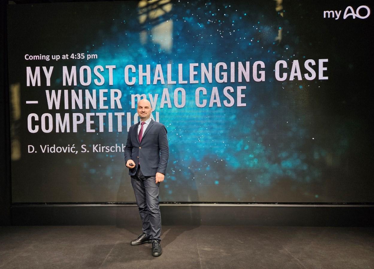 da je naš nastavnik izv. prof. dr. sc. Dinko Vidović osvojio prvo mjesto na natjecanju My Most Challenging Case, u organizaciji švicarske zaklade AO i WST, u konkurenciji od 61 ortopeda i traumatologa iz cijeloga svijeta. Čestitamo našem nastavniku Vidoviću i njegovim suradnicima koji su pridonijeli ovom velikom ostvarenju.