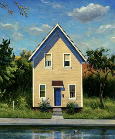 “Painting is a way for me to tell stories, celebrating our need to connect to each other and to our surroundings. It is not enough for me to just paint a man walking up the stairs. I am intimately involved in that moment as soon as I choose to paint it. I wonder about His stor y and how it relates to mine. Often I choose not to paint a figure in a scene at all, which overstates an obvious absence. To me, this implies a narrative that lends itself to being internalized in some way. ”