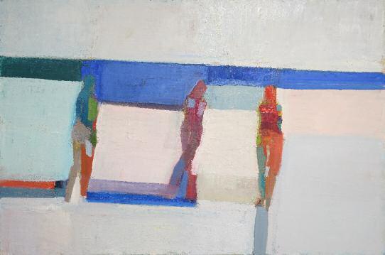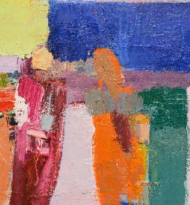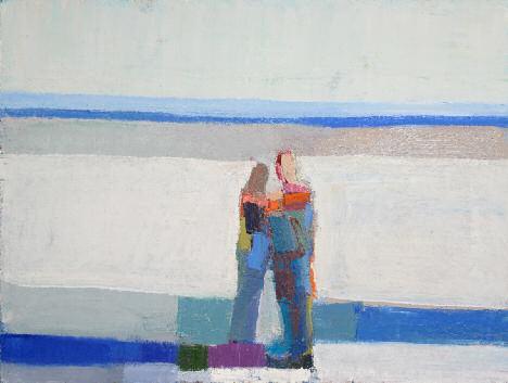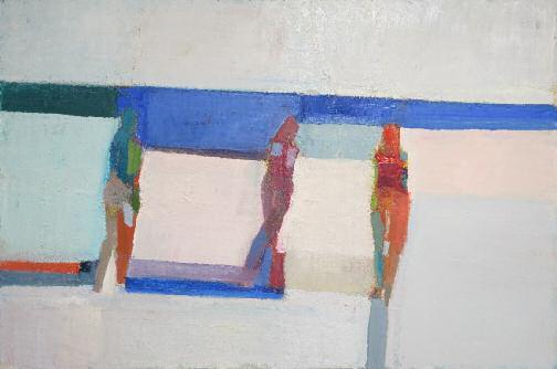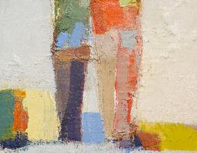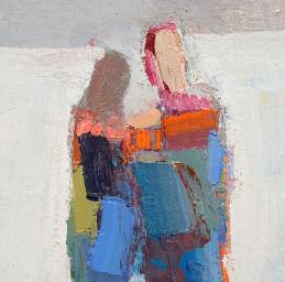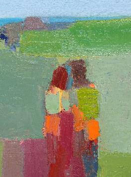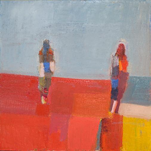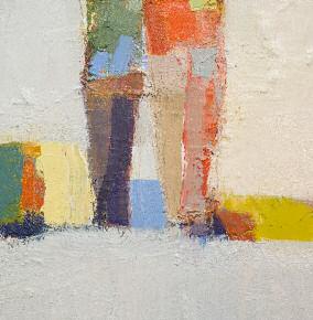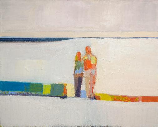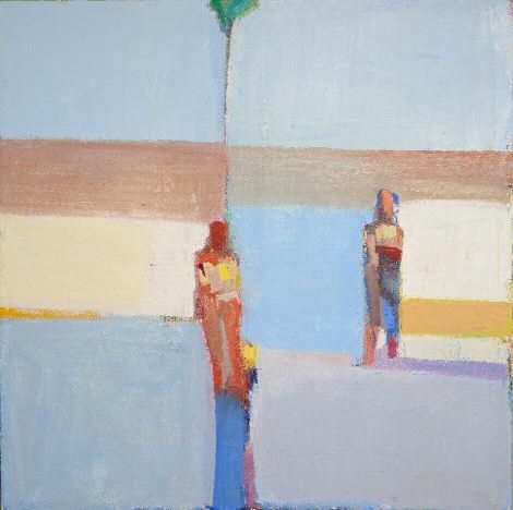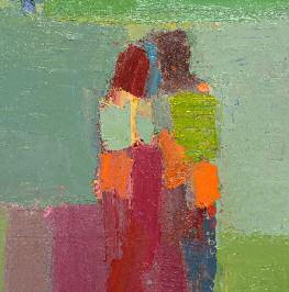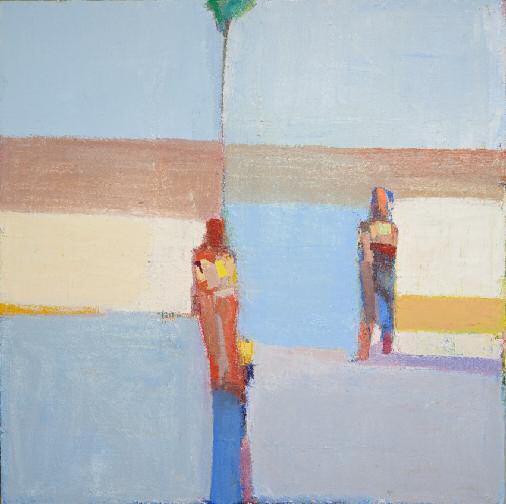 “I strip away the superfluous detail and minutiae of the moment in order to present each scenario in its essence. At a certain point, specific content is not that important or e ven rele vant, but rather what appears to be g oing on, creating situations that can be obser ved or contemplated in more universal ways. is sense of ambig uit y or vag ueness allows for a rang e of interpretations and assumptions, for viewers to perhaps add their own content, emotions or undercurrents, overlaying what the y think is happening with their own explanations. To heig hten their eng ag ement, I use texture to create a sense of dimensionalit y, a perception of three dimensions in two, thereby inviting viewers to " step into" each composition as if the y were actually there, and to participate in their own narratives.