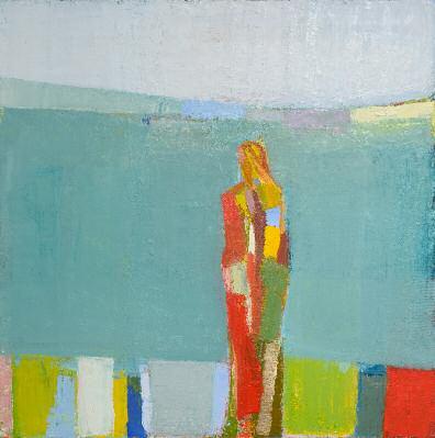 “ e ways I express feeling s of solitude or disconnectedness in my open-ended plot lines are based on my own introspective moments as well as on assumptions about the subjects in my compositions. With my e ver-present sketchbook, I obser ve alone, recording actions and interactions at a distance, working with whate ver I can see, taking what little information is available and imag ining the rest. So much is unclear, uncertain and not possible to obser ve. Blending in the setting s the trees, water, and other surrounding s I translate my obser vations into painting s, which in turn become the stories, stories we can either share with one another or ponder in our own unique and personal ways.