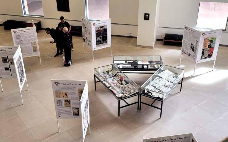Starting with the origins of the SGN, the exhibit is organized around pertinent topics, such as legal rights, Gays in the military, marriage equality, the AIDS crisis, and much more. Pages from the paper are shared through a combination of enlarged reproductions on informative placards and actual issues in glass cases. Visitors can roam freely and experience the displays at their leisure.