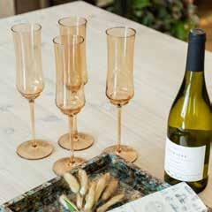 Pop the champs — but make it vintage. These tulip-shaped stunners in ambertinted glass bring all the Gatsby vibes without the Jazz Age drama. Whether you’re toasting a milestone or celebrating a Tuesday, their seven-ounce capacities and handwash-only care make ’em as practical as they are pretty. Pair with a thoughtful bottle of bubs and gift with a glittering wink. $18, NantucketLooms.com