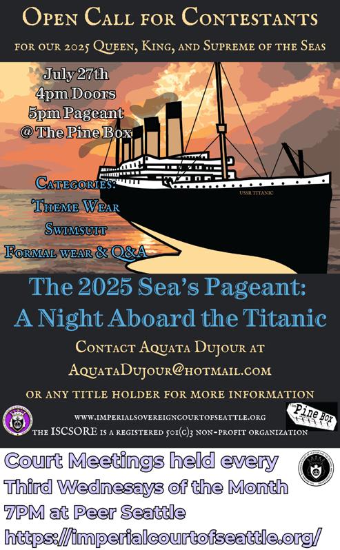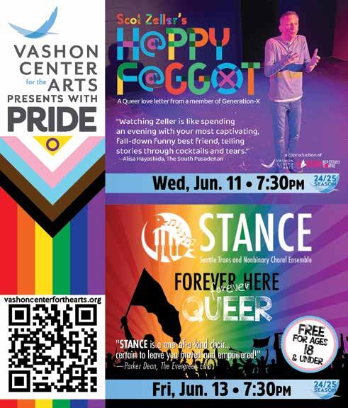 Port Townsend Pride uplifts the 2SLGBTQIA+ community through advocacy, the arts, and joyful connection! Join us for a vibrant celebration featuring live performances, 50+ vendors, a kids’ zone, a sensory space, delicious food, and our one-ofa-kind boat parade—all in a welcoming and inclusive space for everyone. www.theproductionalliance.org/events/ ptpride
