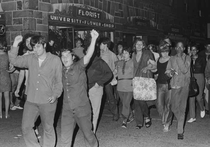 In the early hours of June 28, 1969, inspired by the indoor commotion at the Stonewall Inn that June night, an angry crowd began congregating around outside as police began arresting some of its patrons, protesting the unjust harassment by throwing objects and blocking the police’s path.