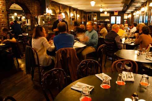 destination for Broadway stars and starlets to come enjoy solid meals after their performances in a dimly lit, cozy atmosphere. The establishment’s long history serving theater clientele is reflected in its décor, with Broadway posters on the back wall showcasing its place in feeding the entertainment industry over the decades. Its menu consists mainly of refined staples and classics like meatloaf with gravy, roast chicken, and pork chops served with sides of spinach and mashed potatoes.