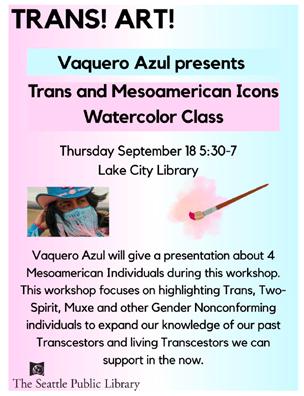 Vaquero Azul presents Trans and Meesoamerican Icons Watercolor Class. Reoccuring art program series every Thursday scheduled though Oct. 23