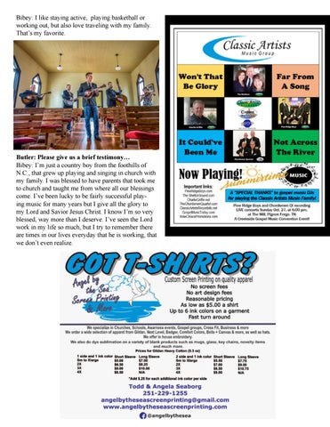 Butler: Please give us a brief testimony… Bibey: I’m just a country boy from the foothills of N.C., that grew up playing and singing in church with my family. I was blessed to have parents that took me to church and taught me from where all our blessings come. I’ve been lucky to be fairly successful playing music for many years but I give all the glory to my Lord and Savior Jesus Christ. I know I’m so very blessed, way more than I deserve. I’ve seen the Lord work in my life so much, but I try to remember there are times in our lives everyday that he is working, that we don’t even realize.